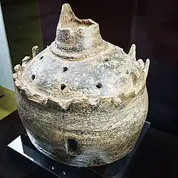 A second set of collective graves found at the site dated from the Iron Age and were also built of uncut or rough-cut stone and formed into a variety of shapes. These were divided into several chambers, each of which contained the remains of several people. Despite having been plundered in the past, excavations from these Iron Age tombs yielded a number of artefacts, including pottery and stone vessels, dagger blades, bronze arrowheads, and beads.[2]