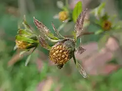 Bidens tripartita is a common and widespread species of flowering plant in the sunflower family, Asteraceae, commonly known as three-lobe beggarticks,[3] three-part beggarticks, leafy-bracted beggarticks or trifid bur-marigold. It is native to much of Eurasia, North Africa, and North America, with naturalized populations in Australia and on some Pacific Islands.[4][5][6][7][8]