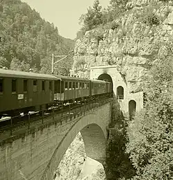 Originally, the Biel/Bienne–Sonceboz-Sombeval section was part of the Moutier–Delémont–Delle–Belfort international route. The opening of the Grenchenberg tunnel in 1915 reduced the route via Sonceboz-Sombeval to Moutier to a branch line.