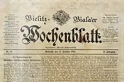 a German newspaper from the late 19th century whose title translates to "Bielsko-Biała Weekly"