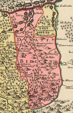 1. ^ Nevertheless, the use of this term is a subject of considerable controversy and is often rejected by people with a clear Silesian or Lesser Polish identity. See Borówka, Tomasz (6 November 2022). "Mamy na Śląsku wyimaginowaną krainę. Kto i kiedy właściwie wymyślił nazwę "Podbeskidzie"?" (in Polish). Ślązag. Retrieved 12 July 2023.; Drost, Jacek (25 February 2016). "Co to jest Podbeskidzie? Podręcznik edukacji regionalnej utrwala taką nazwę" (in Polish). Dziennik Zachodni. Retrieved 12 July 2023.; "Podbeskidzie? Małopolska? Górny Śląsk? Beskidy? – Czyli gdzie leży Żywiecczyzna". Stowarzyszenie Beskidzki Dom (in Polish). zywiec.info.pl. 22 May 2022. Retrieved 12 July 2023.