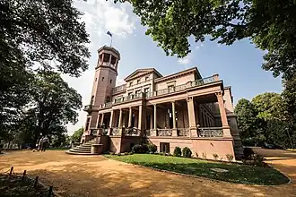 The Biesdorf Palace (German: Schloss Biesdorf) is a Neoclassical-style building in Marzahn-Hellersdorf, Berlin. Constructed in 1868, Werner von Siemens acquired the palace in 1887. However, in 1889 he handed the building over to his son, Georg Wilhelm von Siemens. Damaged in World War II, the building was reconstructed on the basis of its original appearance, with the work being completed in 2016.