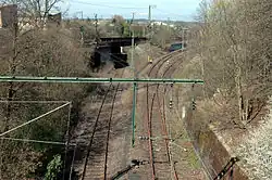 Remains of the electrified line from Backnang with crossing under the main line(April 2007)