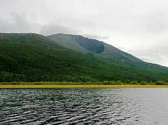 20 km (12 mi) to the south, across the Tsipikan River, rises the smaller Maly Khapton range, highest point 2,135 m (7,005 ft). It runs parallel to the Bolshoy Khapton at the southern limit of the Baunt Depression.[2]