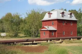 Big Otter Mill, also known as Forbes Mill, is a historic grist mill located near Bedford, Bedford County, Virginia, USA. It was built about 1920 and is a large, 2½-story, mortise-and-tenon framed mill building, topped by an unusual and picturesque mansard roof. The mill retains a nearly complete set of early-20th century machinery, including a 13-feet diameter water wheel, which was used until the late 1940s. Also on the property are a contributing mill race and the foundation of a store.[3] The building is under restoration as a mill museum.