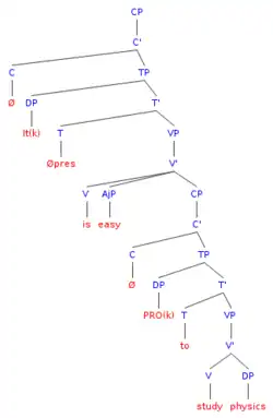 - ^ a b c d e f g h i j Hornstein, Norbert (1999). "Movement and Control". Linguistic Inquiry. 1. 30 (1): 69–96. doi:10.1162/002438999553968. JSTOR 4179050. S2CID 593044.
