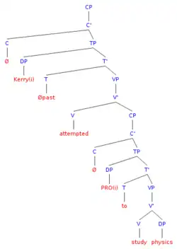 b.  Kerryi attempted [PROi  [T to] study physics].