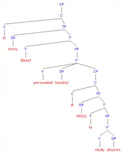 b.  Kerry persuaded Sarahj [PROj  [T to] study physics].