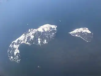Big Tancook Island is the largest of many islands in Mahone Bay, Nova Scotia.[1] It measures approximately 4 km (2.5 mi) (north to south) by 1.6 km (1.0 mi) forming roughly a "C" shape. Its area is 550 acres (2.2 km2) and has a rocky shoreline with open fields and softwood forest dotted by ponds, residential properties and fish stores. It is separated from nearby Little Tancook Island to the east by a 1 km (0.6 mi) wide strait called "The Chops". Big Tancook Island is approximately 4 km (2.5 mi) from Sandy Cove Point on the Aspotogan Peninsula - the nearest point on the mainland. Wildlife populations are limited to deer, muskrats, snakes, and pheasants, and a great variety of birds.