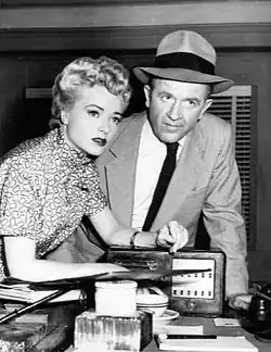 Big Town began as an American radio series of the same name (1937–1952).[2] The series was set in fictitious Big Town, with stories centered around The Illustrated Press newspaper, the largest and most influential paper in the city.[3] The newspaper's motto was "Freedom of the press is a flaming sword. Use it justly; hold it high; guard it well."[4] The main characters were Steve Wilson and Lorelei Kilbourne.[3] Guest stars included Dennis Weaver,[5] Tommy Kirk,[6] Russell Thorson,[7] Marianne Stewart,[8] Richard Kiley, and Audra Lindley.[9]
