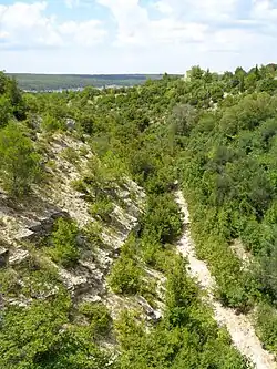 During the dry season though, in summer, the river dries up and only its dry bed remains visible. In its lower course there is an asphalt road and a bridge, connecting villages Gornji Karin and Donji Karin, that overlooks the river bed.