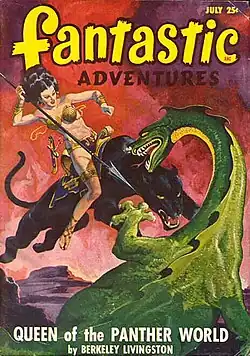 Comic book writer and artist Mike Grell designed the character Shadow Lass in the series Legion of Superheroes wearing a shiny black bikini as the costume for DC Comics. During his leadership, another Legion character Saturn Girl wore a pink bikini as her costume which she continued till 1982. Writer-artist Budd Root created Cavewoman for Basement Comics, a voluptuous barefoot jungle goddess in a snakeskin bikini.[112]