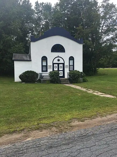 The synagogue was built in 1926 and is a small, 1+1⁄2-story wood-frame building with a stucco finish.[2] It was added to the National Register of Historic Places in 1999.[1]