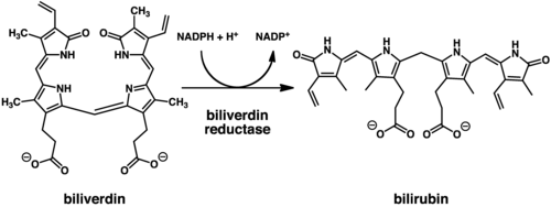 - ^ Rigney E, Mantle TJ (Nov 1988). "The reaction mechanism of bovine kidney biliverdin reductase". Biochimica et Biophysica Acta (BBA) - Protein Structure and Molecular Enzymology. 957 (2): 237–42. doi:10.1016/0167-4838(88)90278-6. PMID 3191141.