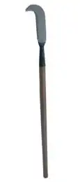 An agricultural version, commonly known as either a brush-axe, bush-axe, or brush-hook, is readily available in rural hardware and farm-supply stores in the United States today, and is available in the United Kingdom as a "long bill". It has a 4-foot-long (1.2 m) handle, and a 16-inch (41 cm) head. It is useful for clearing undergrowth and unwanted hedgerows. Both the concave and convex edges may be sharpened edges, but spear-points and back-hooks are not available. Expertly used, the brush-axe can fell a 3-inch (7.6 cm) tree with a single blow.