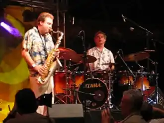 ![]() Bill Bruford and Tim Garland performing with Earthworks in 2004 | |