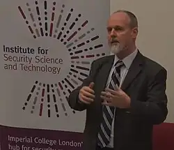 He gave the opening key-note address to the Society for Risk Analysis Europe Conference in 2016.[55] On 15 November 2017, following in the steps of former US Secretary for Homeland Security Michael Chertoff and the UK Minister of State for Universities and Science David Willetts, he became the 8th person and first alumnus to give the annual Vincent Briscoe Lecture to the Institute for Security Science and Technology at Imperial College London.[56][57]