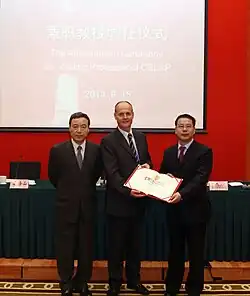 In 2014 he was appointed as a Visiting Professor to CELAP, the China Executive Leadership Academy in Pudong&, one of China's top four national 'Party Schools', in Shanghai. The position was renewed in 2018.[16][17][18] He has also conducted short courses for officials through the Shanghai Administration Institute,[19][20] and writes on the West's evolving relations with China,[21][22] as well as events surrounding the protests in Hong Kong.[23][24] He was an Associate Fellow of the International Security Programme at Chatham House in London for over a decade.[25]