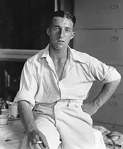 Born in Lingwood, Norfolk, Bill Edrich was an attacking right-handed batsman and right-arm fast bowler.[2] Playing first for Norfolk in the Minor Counties at the age of 16, he qualified for Middlesex in 1937 and was an instant success, scoring more than 2,000 runs in his first full season. The following year, 1938, he scored 1,000 runs before the end of May and made the first of 39 Test match appearances, though with little success. In fact, Edrich achieved almost nothing in Tests until the final "Timeless Test" of the 1938–39 tour to South Africa at Durban, where his 219 enabled England to reach 654 for five wickets, at which point the Test was left drawn to enable the tourists to catch their ship home.[2]