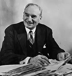 Biographer Glenn H. Smith calls Langer's Senate career "A Study in Isolationism, 1940–1959" and emphasizes his close ties with German American and Scandinavian American voters who bitterly remembered the First World War in the Dakotas and deeply distrusted Britain and the United Nations.[12] Like Senator Henrik Shipstead of Minnesota, Langer championed non-interventionism[13] and supported minimizing America's involvement in World War II. At home, he concentrated on making life easier for North Dakotan farmers by raising wheat prices and granting government relief. He was also adamant about implementing affordable healthcare for everyone. As a senator, he served on the Post Office, Civil Service and Indian Affairs committees. He and Shipstead were the only senators to vote against the United Nations Charter in 1945.[9] He was also one of seven senators to oppose full U.S. entry into the United Nations.[14]