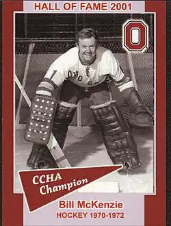 Before turning professional, McKenzie played for Ohio State University (1968–72), where he helped the team win the inaugural CCHA Tournament Championship in 1972. He was later inducted into the Ohio State University Sports Hall of Fame.[1] Upon retirement from professional hockey, he worked in sales, but continued his involvement with the sport as a volunteer assistant coach for the Ohio State Buckeyes men's ice hockey from 1980 through their first appearance in the NCAA Frozen Four in 1998. He then became a volunteer assistant for the Ohio State Women's hockey team from 2004 to 2010.[2]