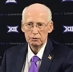 William D. Snyder[1] (born October 7, 1939) is an American retired college football coach and former player. He served as the head football coach at Kansas State University from 1989 to 2005 and again from 2009 to 2018. Snyder initially retired from the position from 2006 to 2008 before being rehired.[2] Snyder retired for the second time on December 2, 2018, and is serving as a special ambassador for the athletics department.
