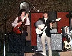 Wyman took piano lessons from age 10 to 13. A year after his marriage on 24 October 1959 to Diane Cory, an 18-year-old bank clerk, he bought a Burns electric guitar for £52 (equivalent to £1,512 in 2023[8]) on hire-purchase, but was not satisfied by his progress.[9] He switched to bass guitar after hearing one at a Barron Knights concert. He created a fretless electric bass guitar[10] by removing[11] the frets on a second hand UK-built Dallas Tuxedo bass[12][13] and played this in a south London band, the Cliftons, in 1961.