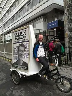 A billboard bicycle (advertising bike) is a type of mobile advertising in which a bike tows a billboard with an advertising message. Gary Saunders of Queens, NY, New York began the billboard bicycle concept in 1997. His billboard bicycle was geared toward messenger bikes and measured 12" by 18".[1]