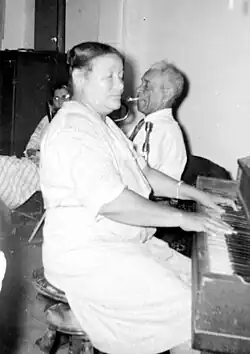 ![]() Pierce playing the piano with husband De De Pierce on trumpet in the background, 1949 | |