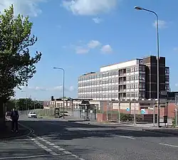 The hospital had its origins in the Wigan Poor Law Union Workhouse established in 1837.[2] This became the Frog Lane Public Assistance Institution in 1930.[3] After it joined the National Health Service in 1948, it became the Frog Lane Welfare Home and started specialising in the care of the elderly.[3] It became known as the Frog Lane Hospital before closing in 1970.[3]