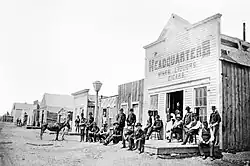 The nearby town of Coulson appeared a far more likely site. Coulson was a rough-and-tumble town where arguments were often followed by gunplay. Liver-Eating Johnson was a lawman in Coulson.[28] Perhaps the most famous person to be buried in Coulson's Boothill Cemetery is H.M. "Muggins" Taylor,[29] the scout who carried the news of Custer's Last Stand at the Battle of Little Bighorn to the world. Most buried here were said to have died with their boots on. The town of Coulson had been on the Yellowstone River, which made it ideal for the commerce steamboats brought up the river. However, when the Montana & Minnesota Land Company oversaw the development of potential railroad land, they ignored Coulson, and platted the new town of Billings just a couple of miles to the northwest. Coulson quickly faded away; most of her residents were absorbed into Billings. Yet, for a short time, the two towns coexisted; a trolley even ran between them. But ultimately there was no future for Coulson as Billings grew. Though it stood on the banks of the Yellowstone River only a couple of miles from the heart of present-day downtown Billings, the city of Billings never built on the land where Coulson once stood. Today Coulson Park sits along the banks of the Yellowstone where the valley's first town once stood.[24]