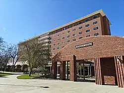 In the 1970s and 1980s, Billings saw major growth in its downtown core; the first high-rise buildings to be built in Montana were erected. In 1980, the 22-floor Sheraton Hotel was completed. Upon its completion, it was declared "the tallest load-bearing brick masonry building in the world" by the Brick Institute of America.[33] During the 1970s and 1980s, other major buildings were constructed in the downtown core;[34] the Norwest Building (now Wells Fargo), Granite Tower, Sage Tower, the MetraPark arena, the TransWestern Center, many new city-owned parking garages, and the First Interstate Center, the tallest building in Montana.[35]