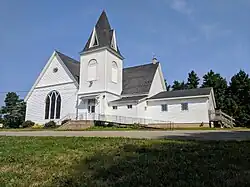 Ebenezer Bill, a New England Planter, was granted 1000 acres of land on July 21, 1761. According to the grant, a 78-acre plot in the centre of the property was intended to include a commercial area, a town hall, a school, and a church property.[2] From 1829 to 1961 there were schools in Billtown.[3] A community of properties which extended along the road that serviced the area developed. By the early 1900s this included a temperance hall, multiple general stores, a blacksmith, and two schools.[4] On December 1, 1914, the 14.8 mile North Mountain Branch railroad was completed and the Billtown Train Station was opened. This station would continue to be used until 1961. Apple warehouses were built near the station.[5] In the early 1920s telephone was introduced. In 1934 Electricity was brought to the community.[6] As was typical of planter communities in the area, residences and homesteads to farms were built along the roads servicing the area and this type of community remains to today.[7]