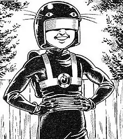 In The Beano's 1967 Easter issue, a DC Thomson advert announced a new superhero would feature in the magazine soon. The advert read: "Look at this chap! It's the amazing Billy the Cat! Follow his strange, exciting adventures in the big city—starting in The Beano next week!" as the artwork depicted a figure in a black outfit running across a roof.[16] Superheroes were not new to The Beano, but Billy the Cat's pre-production developments are unknown. Lew Stringer noted Billy the Cat published when the Batman television adaptation aired, but the character having a secret identity as a schoolboy was similar to Spider-Man's characterisation.[17]