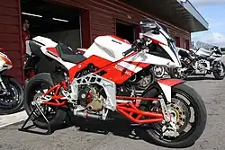 Bimota first experienced international racing success in 1980 when privateer Jon Ekerold won the 350cc world championship on a Yamaha-powered Bimota.[3] They also experienced success in the early years of the Superbike World Championship. Virginio Ferrari won the 1987 Formula TT title aboard a YB4 EI, partnering with Davide Tardozzi. Tardozzi won five races in the inaugural 1988 world superbike championship, more than any other competitor, but inconsistent results relegated him to third place in the final standings.[4]