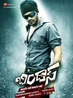 Bindaas (Telugu: బిందాస్) is a 2010 Telugu action comedy film directed by Veeru Potla starring Manoj Manchu and Sheena Shahabadi. The film was released on 5 February 2010. Made on a budget of ₹3 crore, the film grossed more than ₹8 crore and was considered a hit. Additionally, it was dubbed and released in Malayalam as Happy 2 Happy and remade in Kannada as Jinke Mari (2013).[2] The film received two Nandi Awards.
