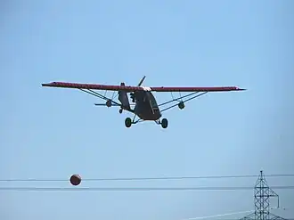 The landing gear is of conventional configuration, with bungee suspension, giving good rough field capabilities. The enclosed cabin includes a cargo area that is located on the aircraft's center of gravity, eliminating trim changes as the load varies.[2]