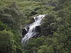 Two waterfalls along the length of Scalehow Beck indicate fault lines in the underlying rocks of the Borrowdale Volcanic Group.[1]