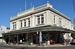 By the turn of the century, Birkenhead had developed into three centres: suburban Birkenhead, rural Birkdale and Chelsea, adjacent to the refinery.[53] The factory provided steady work for the community,[54] employing a third of the workforce of Birkenhead, and allowing farmers and orchardists stability in years with poorer crops.[60] The ferry service brought new residents to the area who commuted to Auckland for work, although fewer than neighbouring Devonport; only three stores were located in Birkenhead in 1901.[61] The Birkenhead ferry developed a café atmosphere for the commuters, which included string instrument players, and a smokers cabin, where man of Birkenhead discussed politics.[61]