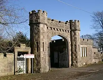 ![]() Lodge gates at the front of Birkwood Castle in 2007 | |
