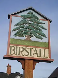 The symbol of Birstall is a cedar tree.[3] The original tree stands in Roman Road. It was once in the grounds of the now demolished Birstall Hall. The area of the parish is 791 acres (3.20 km2).