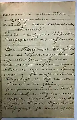 ![]() The Word about the Walk of the Most Holy Birth–Giver of God Through Torment (Manuscript, Late 19th Century, Collection of Viktor Smirnov) | |