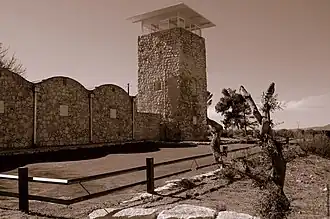 The fortress was built by the Palmach in 1946 as a base for the defense of Jews in nearby Safed and as a way-station for Jewish immigrants arriving from Syria. Because iron was scarce, the double walls were constructed from stone topped by a vaulted roof fitted with drainpipes and channels to channel rainwater into a reservoir. The fortress had two watchtowers and a lookout. These towers served as a means of communication with the Jewish community in Safed and the Upper Galilee headquarters of the Haganah in Kibbutz Ayelet HaShahar.[1]