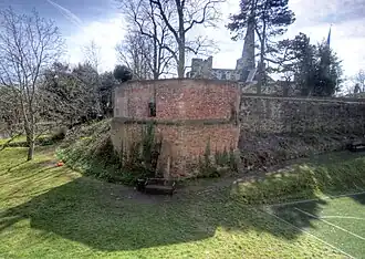 The current building replaced a medieval Bishop's Palace built in the 14th century for Bishop Langton. The first palace was destroyed during the English Civil War and rebuilt in 1687 as the current building. The palace was residence to the Bishop of Lichfield from the late 1860s until 1954, it is now used by Lichfield Cathedral School. The palace is a Grade I listed building. To the north and east of the house are the remains of the ditch that surrounded the Close, remains of the north-east tower are present in the rear garden of the palace and is a scheduled monument.