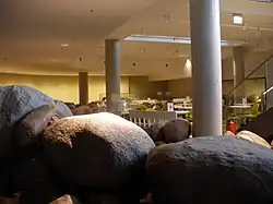 The tower's foundations lie under a commercial building at the corner of Kreuslerstraße and Speersort in the immediate vicinity of St. Peter's Church. The area is a light geest, where the first settlement of Hamburg has been documented. The base of the tower was discovered on 30 August 1962 during demolition work for the St. Peter's Community Center.[2] Initially it was assumed that displaced boulders from nearby Steinstraße had been found, which is believed to be the oldest street of the city of Hamburg, and an ancient trade route. But after further excavation the remaining foundations of the tower were uncovered.