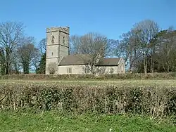 The decorated and perpendicular church was badly damaged in 1760 when the tower collapsed. Restoration followed, and in the 19th century the porch was added. Some windows date from the 18th century, but many are later, from the Victorian era. The later tower, with one bell, was completed in 1887 in the Victorian Gothic Style by John Prichard. The origins of the chancel arch are unclear while the font is 14th century and the stoup is 15th century. The east stained glass window is from 1915.[6][4] The church was designated as a Grade II listed building in 1963.[9]