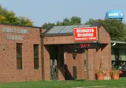Public schools include Bismarck Henning Grade School, Bismarck Henning Junior High School, and Bismarck Henning High School.