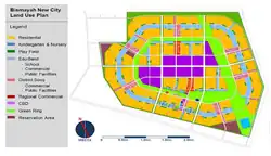 The residential areas are situated around Bismayah centre, which will contain numerous office buildings, markets, mosques, and venues.[5] A green space is situated between the residential area and the centre.