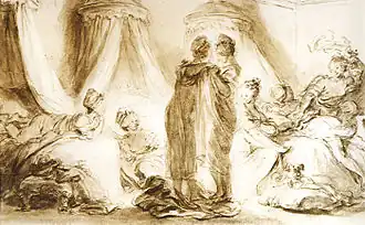 Bistre (or bister) is a pigment made from soot. Historically, beechwood was burned to produce the soot, which was boiled and diluted with water. Many Old Masters used bistre as the ink for their wash paintings.[1] Bistre's appearance is generally of a dark grayish brown, with a yellowish cast.