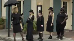 As revenge, voodoo priestess and Bastien's lover Marie Laveau tricks LaLaurie into drinking a false love potion that makes her collapse.